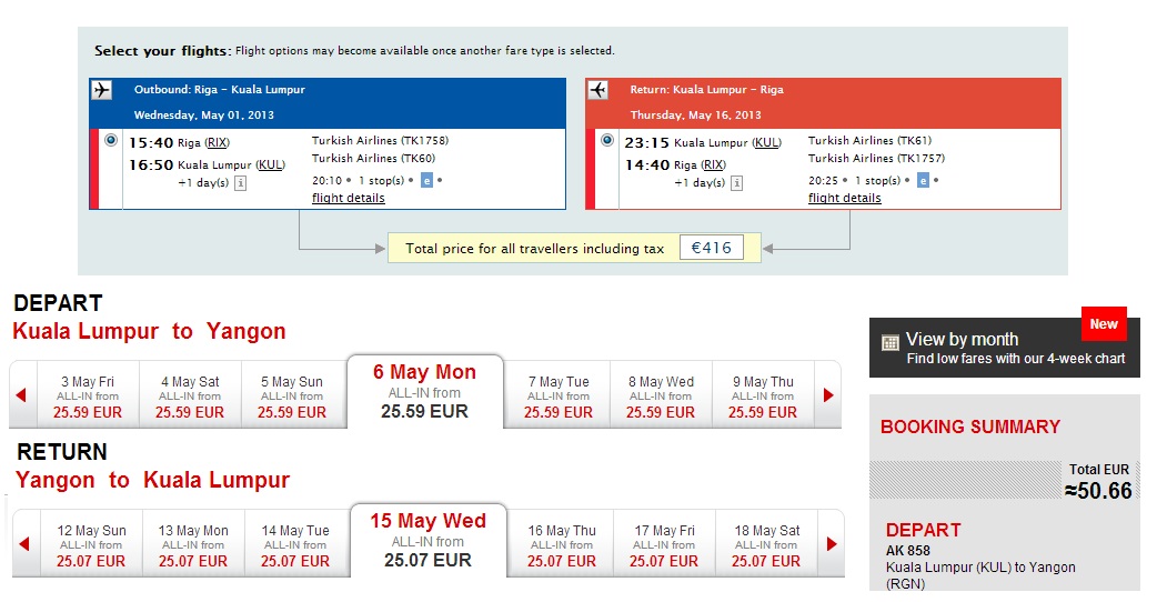 Natomiast wykorzystując promocję Turkish Airlines (najlepszej europejskiej linii lotniczej) przytoczoną przez Lotera – można zauważyć, że otwiera się niesamowita szansa lotu za mniej niż 2000 zł do Birmy. Również z kilkudniowym zwiedzaniem po drodze Malezji. Lot odbywa się w maju. Wylot jednak z Rygi, do której tanio dojedziemy z Polski autobusami np. SimplyExpress