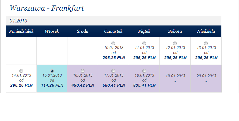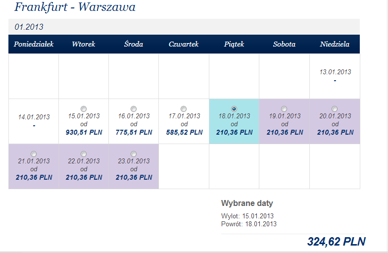 Przykładowa rezerwacja (Warszawa – Frankfurt, Frankfurt – Warszawa)